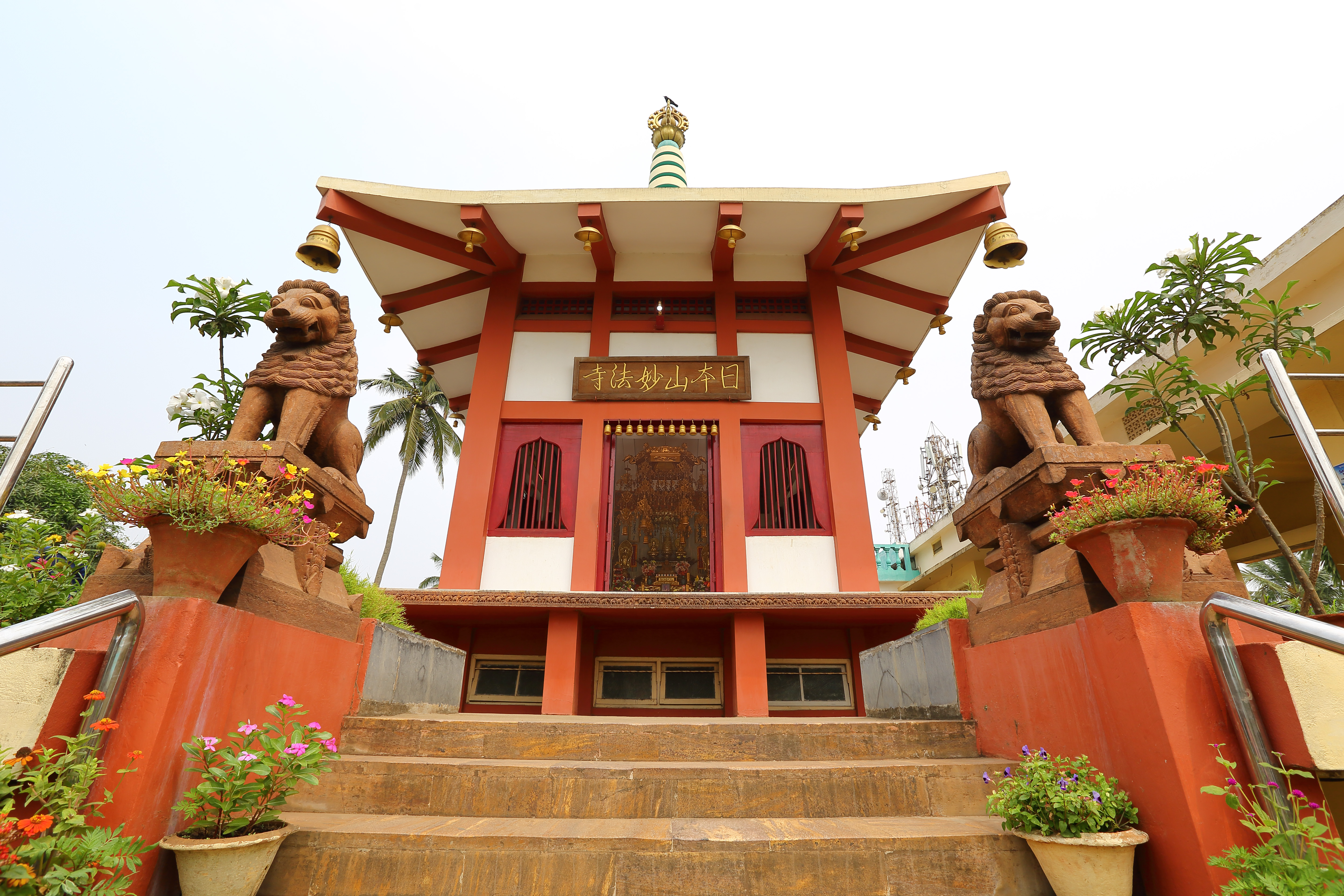 ସଧର୍ମ ବିହାରଟି ବୌଦ୍ଧିୟ ନିର୍ମାଣ ଶୈଳିରେ ନିର୍ମାଣ କରିବା ଦିଗରେ ଚେଷ୍ଟା କରାଯାଉଥିଲା । ଏହାର ଉପର ମହଲାରେ ଥିଲା ଗୋଟିଏ ସୁଦୀର୍ଘ ପ୍ରାର୍ଥନା ଗୃହ ଯେଉଁଠାରେ କି ମଉସାଙ୍କ ଦ୍ୱାରା ନିର୍ମିତ ଏକ ବିଶାଳକାୟ ବୁଦ୍ଧମୁର୍ତ୍ତି ସହ ଗୁରୁଜୀ ଏବଂ ନିଚିରାନ ସଂପ୍ରଦାୟର ଭିକ୍ଷୁମାନଙ୍କର ଫଟୋଚିତ୍ର ସହ ମୁର୍ତ୍ତିମାନ ସ୍ଥାପିତ ହୋଇଥିଲା । ସେଠାରେ ଏକ ବିରାଟକାୟ କାଠ ଓ ଚମଡ଼ା ନିର୍ମିତ ବାଦ୍ୟଯନ୍ତ୍ର ସହ ବୌଦ୍ଧ ଭିକ୍ଷୁମାନେ ବଜାଇବା ଲାଗି ଚମଡ଼ା ନିର୍ମିତ ବାଜା ରଖାଯାଇଥିଲା । ଗୁରୁଜୀ ଓ ଶିଷ୍ୟମାନେ ପ୍ରତ୍ୟହ ପ୍ରାର୍ଥନା ସମୟରେ ଏହି ବାଦ୍ୟଯନ୍ତ୍ର ବ୍ୟବହାର କରୁଥିବାରୁ ଏହାର ଧ୍ୱନି ଏବଂ ‘ନ ମୁ ମୋ ହୋ ରେ ଙ୍ଗେ କ୍ୱ’ ଶବ୍ଦରେ ସମଗ୍ର ଅଞ୍ଚଳଟି ମୁଖରିତ ହୋଇଉଠୁଥିଲା ।